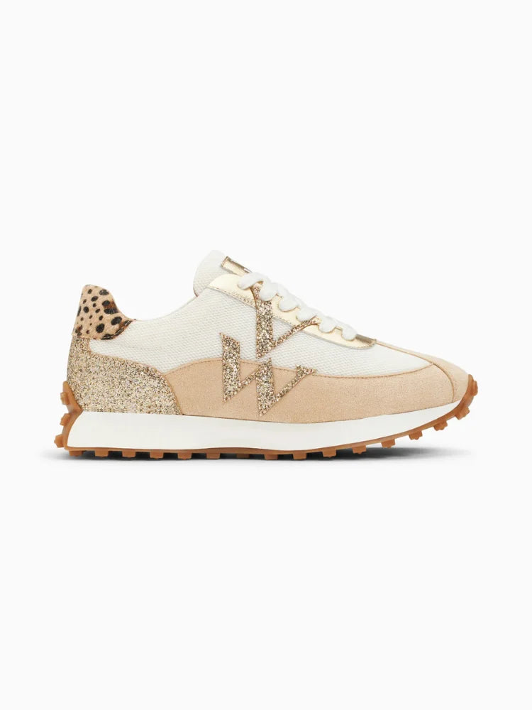 Un pas dans la lumière, un autre dans la douceur. Faustine, c'est les baskets de chez Vanessa Wu qui font pétiller le quotidien sans jamais en faire trop. Un mix subtil entre ivoire tendre, touches de paillettes dorées et imprimé guépard pour réveiller les looks les plus sages.