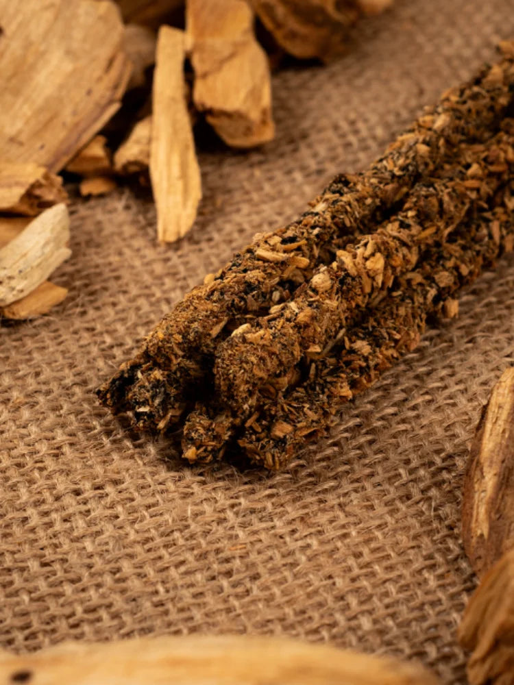 Cet encens est composé de bois de Palo Santo (Pérou), huile aromatique concentrée, charbon de bois, biomasse fruitière, liant naturel et sel.