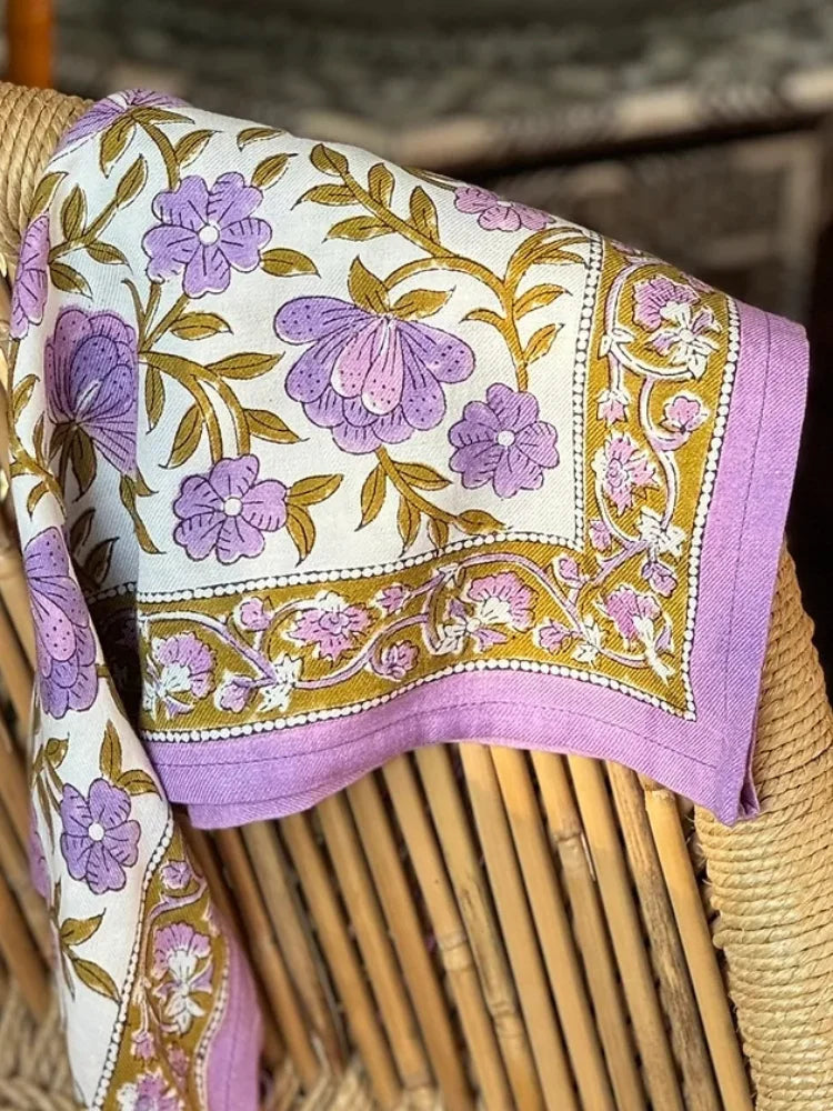 Ajoutez une touche de poésie à votre quotidien avec le foulard Auguste Lilas de chez Byzantine. Ses teintes tendres de lilas et d'or, accompagnées de motifs floraux délicatement imprimés à la main, invitent à une escapade bucolique.