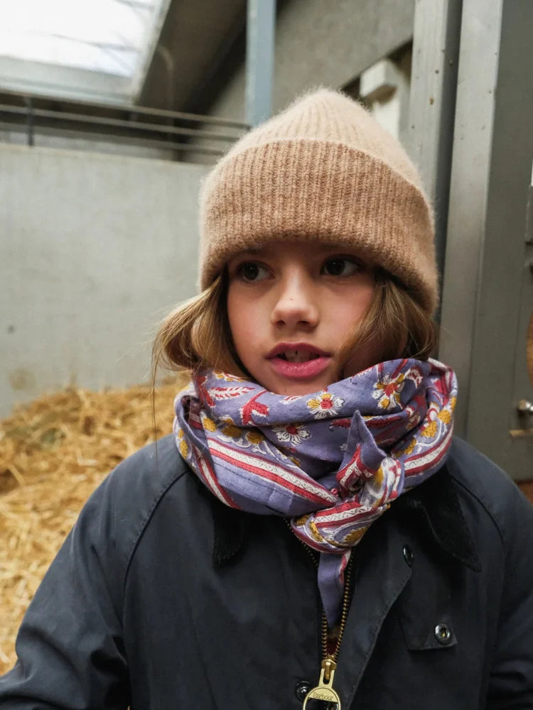 Avec son grand format, il se prête à toutes les envies : noué autour du cou, porté en châle sur un manteau, ou simplement posé sur les épaules quand le froid s'installe doucement. Un foulard pensé pour accompagner les petits et les grands, saison après saison, avec cette élégance simple qu'on aime tant.