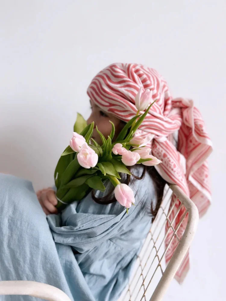 Ce foulard est 100% coton. Nous vous conseillons de le laver en machine à 30°C maximum. Ne pas mettre au sèche-linge.