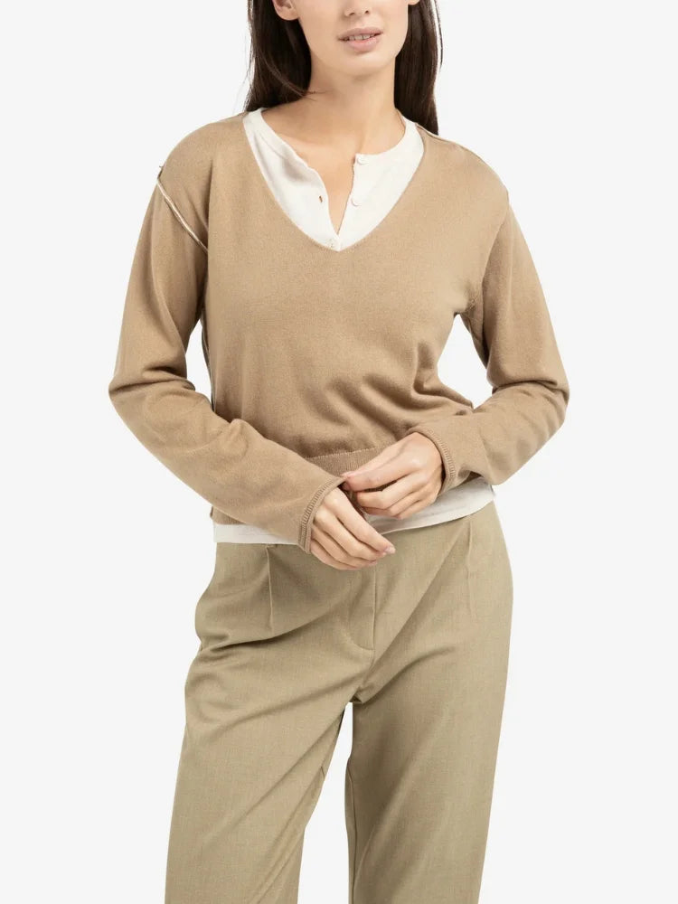 Un essentiel du vestiaire pensé comme une pièce facile à vivre, le pull Marlow joue sur les contrastes subtils pour créer une allure naturellement sophistiquée. Sa maille fine et douce accompagne chaque mouvement avec légèreté, tandis que les finitions contrastées à l'encolure et le long des coutures apportent un effet superposé, presque comme une seconde pièce glissée dessous.