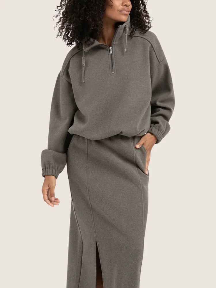 À porter avec une jupe de la même couleur ou glissé sur un jean brut pour un style plus urbain. Deux teintes, deux ambiances : le Dark Taupe Grey Melange, chaleureux et enveloppant ou le Cloud Grey Melange, lumineux et ultra doux. Un essentiel du vestiaire d'automne, pensé pour celles qui aiment avoir chaud tout en restant stylées.
