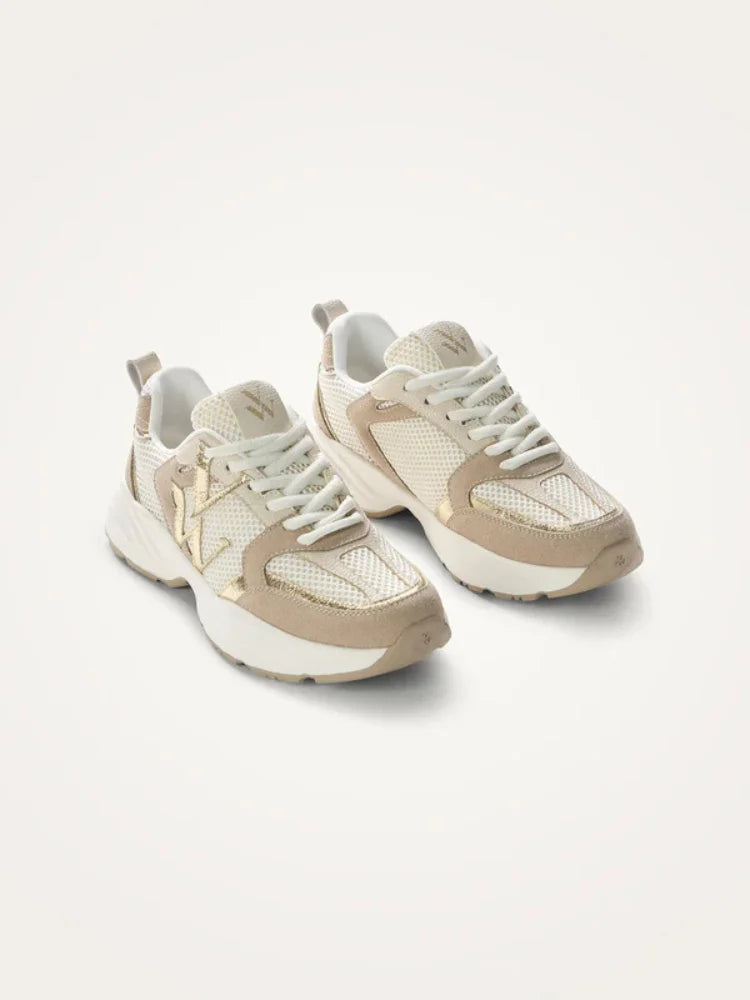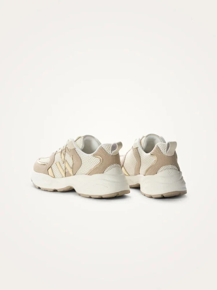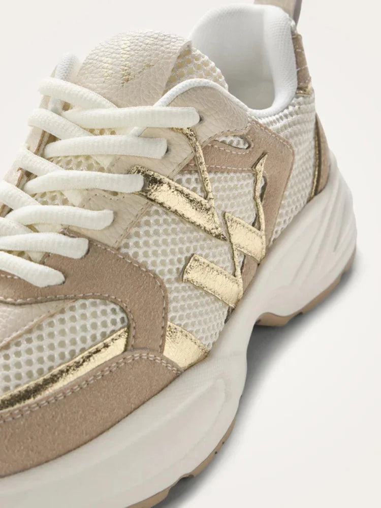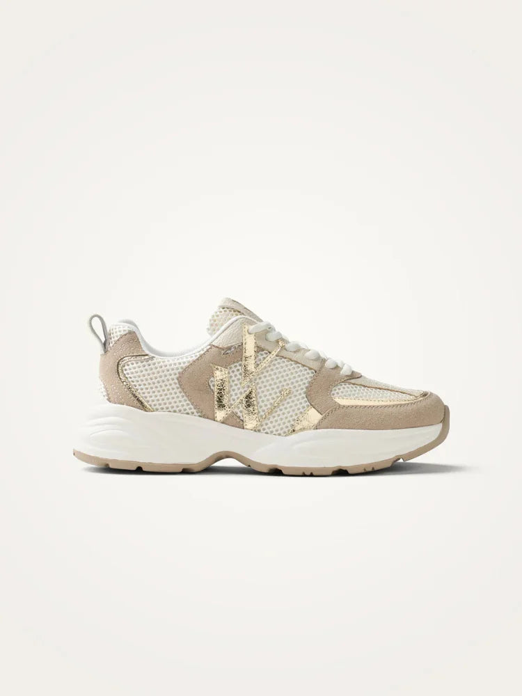 Il y a des baskets qui rassurent, et d'autres qui élèvent une silhouette sans jamais la figer. Les baskets Gigi de chez Vanessa Wu font les deux. Une base claire, des reflets dorés bien dosés, et cette sensation immédiate de confort qui accompagne la journée sans bruit. Une pièce facile, mais jamais banale, pensée pour marcher longtemps, et avec style.
