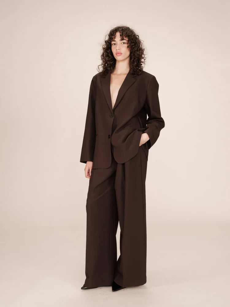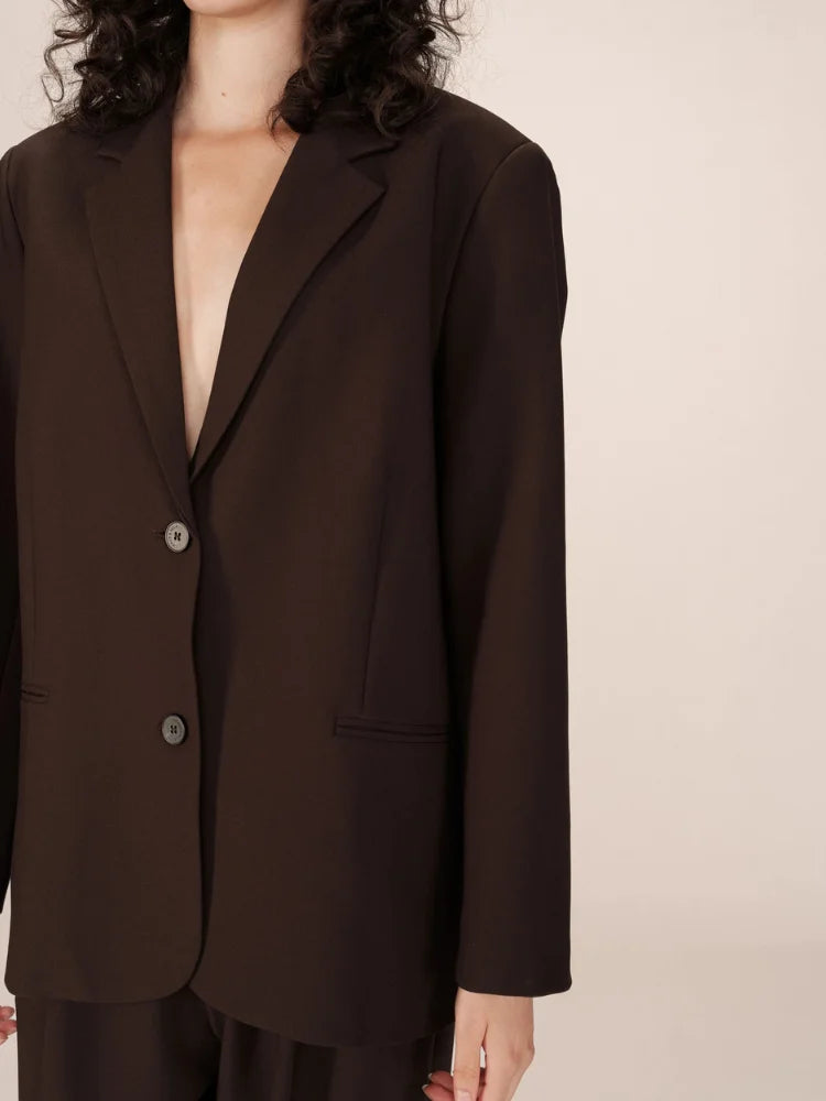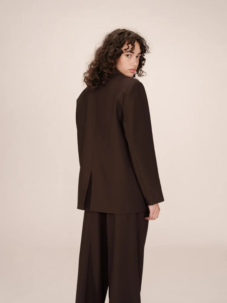 Vous cherchez cette pièce qui fait tout le travail sans en avoir l'air ? Le blazer Strong est pensé pour vous. Avec sa coupe droite impeccable et sa teinte chocolat intense, il apporte immédiatement du caractère à votre silhouette. Un simple jean, un t-shirt blanc, et vous voilà déjà parfaitement mise.