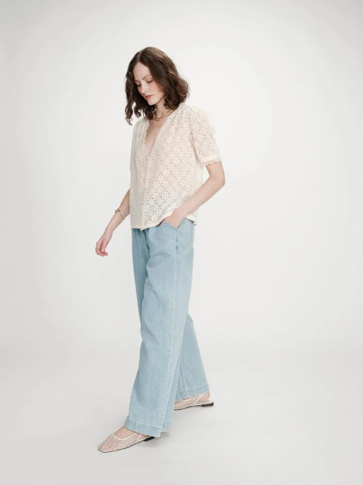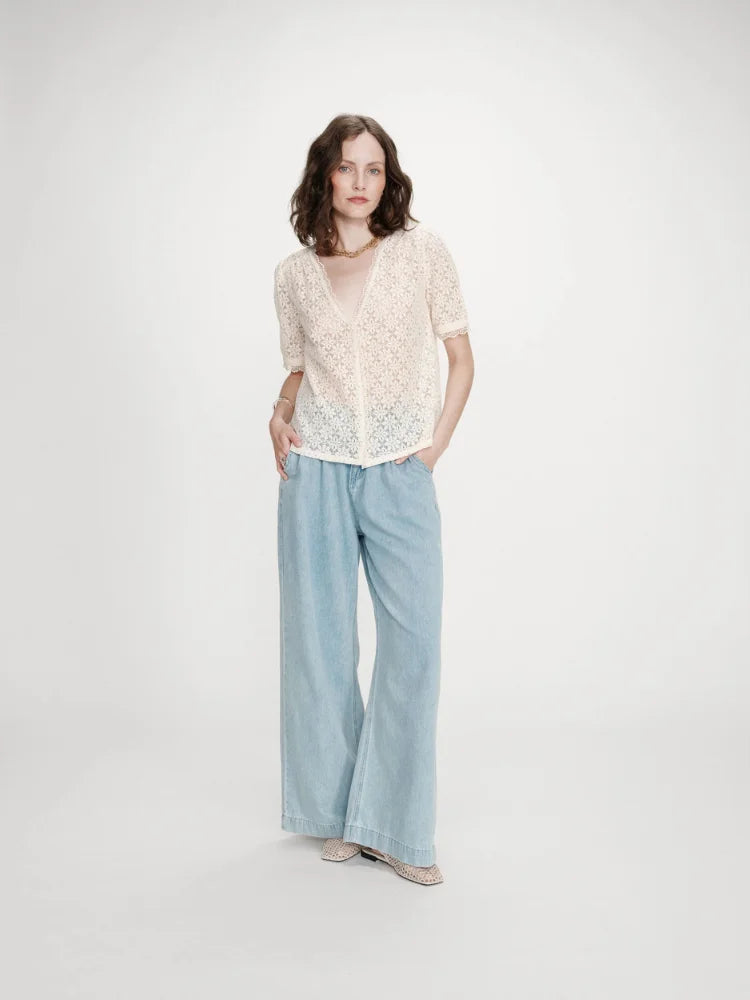 Transparente juste ce qu'il faut, la blouse Vicky de chez Grace & Mila joue l'équilibre parfait entre romantisme et modernité. Sa dentelle florale, légère et raffinée, dessine une silhouette naturelle, facile à porter au quotidien comme lors des beaux moments. Une pièce lumineuse, pensée pour celles qui aiment les détails qui font la différence.