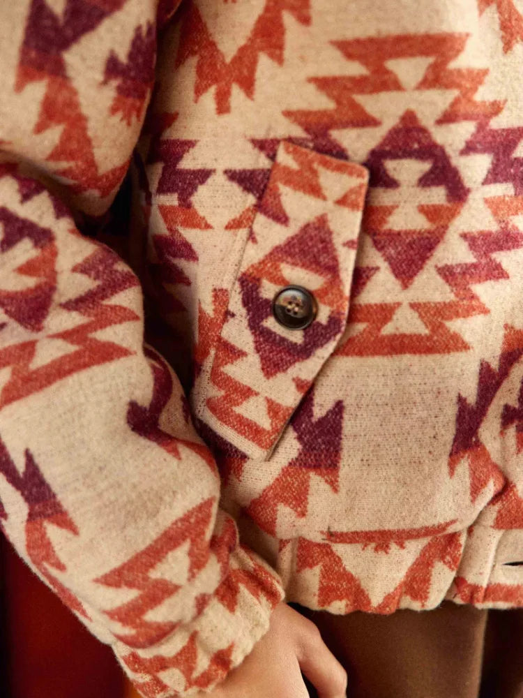 Il suffit parfois d'une pièce. Une pièce qui bouscule les silhouettes sages et réveille les jours gris. Velky de chez La Petite Étoile ne fait pas dans la demi-mesure. Avec ses motifs d'inspiration amérindienne et sa texture tissée, il transporte une allure brute, presque vintage, qui évoque les grands espaces autant que les week-ends à la campagne.