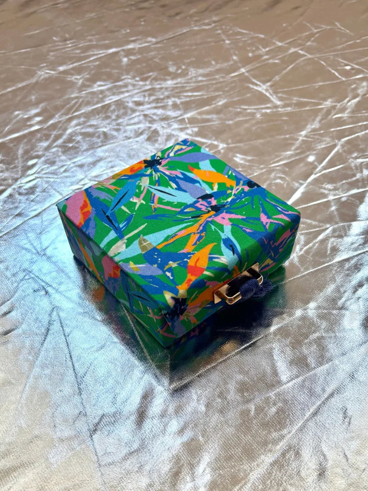 Parce que vos bijoux méritent un cocon digne de ce nom, voici la boîte à bijoux qu'on emmène partout. Douce au toucher, ultra-chic avec ses imprimés soigneusement sélectionnés (fleurs, éclat mystique, solaire ou jungle vibrante), elle cache un intérieur bien pensé pour organiser bagues, colliers et petits trésors.