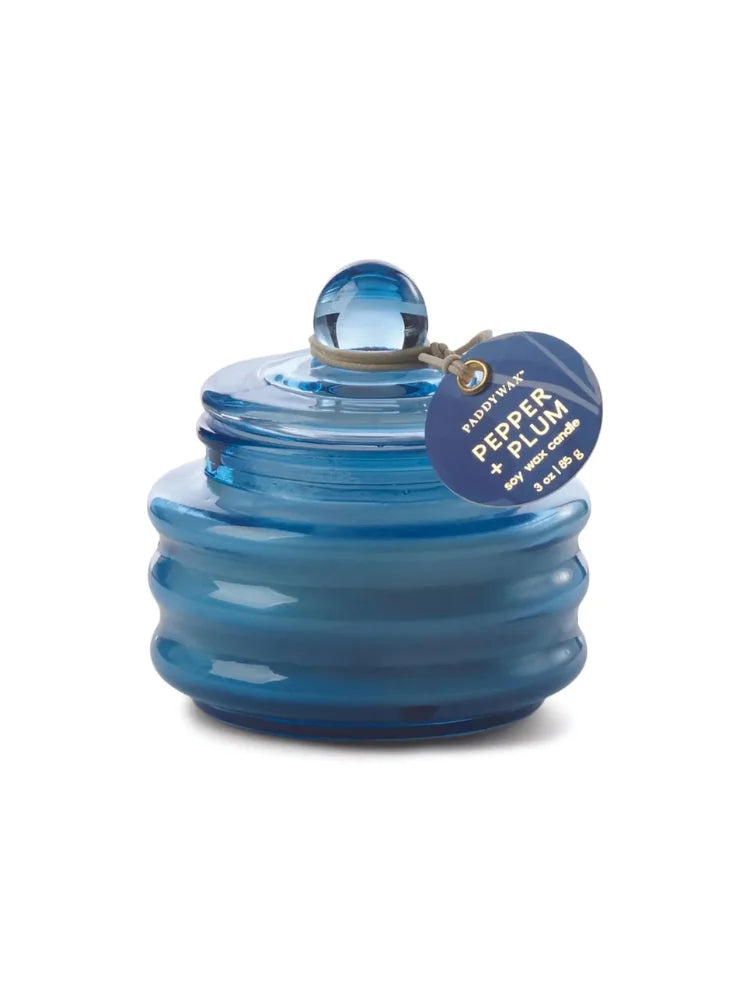 Son écrin en verre cannelé est aussi joli éteint qu'allumé. Une fois la cire fondue, on le recycle volontiers en mini pot ou en boîte à trésors. Allumez-la pendant un bain chaud, un livre à la main et le monde peut bien attendre...