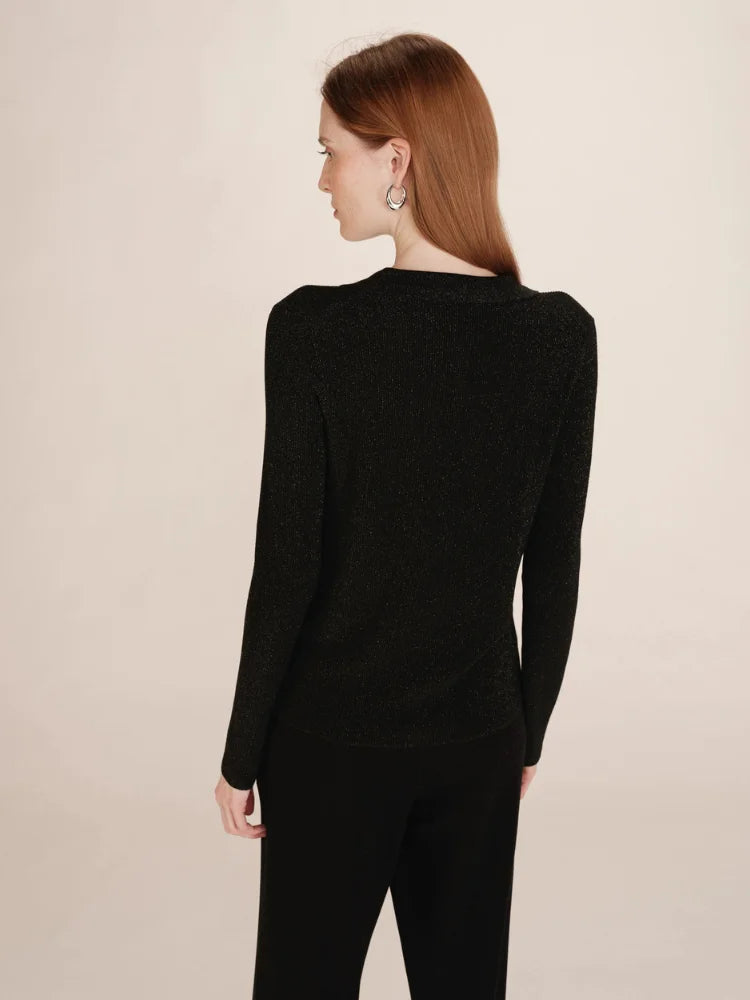 Avec Teller, Grace & Mila signe la pièce chic qui glisse sans effort dans toutes les garde-robes d'automne. Son tricotage en côtes perlées épouse la silhouette sans trop en faire, pendant que le fil lurex attrape joliment la lumière, juste ce qu'il faut pour réveiller un jean ou sophistiquer une jupe.
