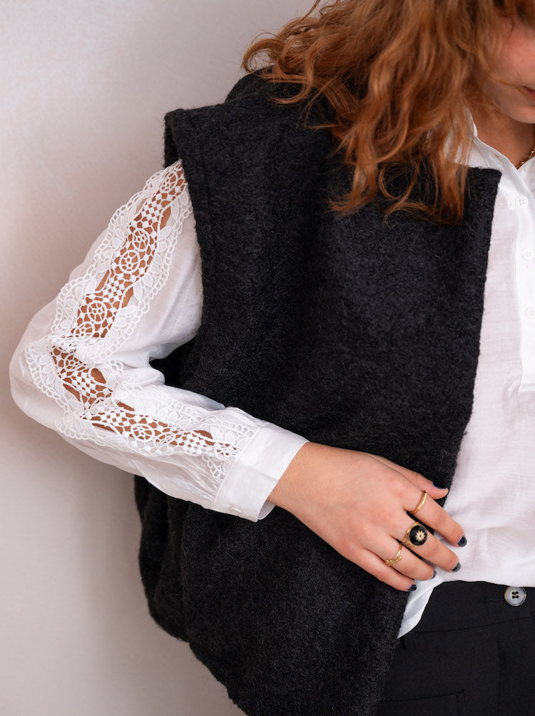 La blouse Layna ornée de dentelle sur les manches ajoute une touche de sophistication et de charme.