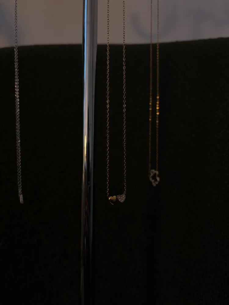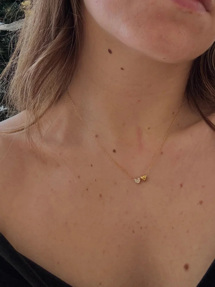 Le collier Coeur Fidèle se glisse sur la peau comme une promesse silencieuse. Deux petits coeurs dorés, posés, racontent l'attachement, la douceur et ces liens qui ne se voient pas toujours mais qui comptent. Minimaliste et délicat, il apporte une touche sensible à la silhouette, sans jamais la surcharger.