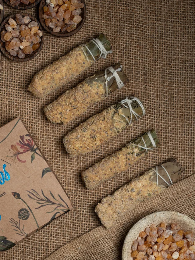 Herbes aromatiques, résines naturelles et huiles essentielles s'unissent dans une alchimie parfaite. Un coeur précieux : Les essences de cèdre, de laurier et d'eucalyptus apportent des notes fraîches et purifiantes, idéales pour un nettoyage énergétique en profondeur.
