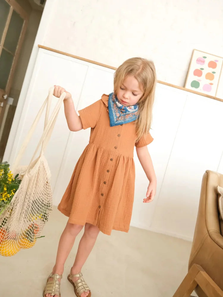 Pensé pour les enfants mais aimé de tous, ce foulard est un clin d'oeil aux balades en vélo, aux paniers de marché et aux goûters dans l'herbe.