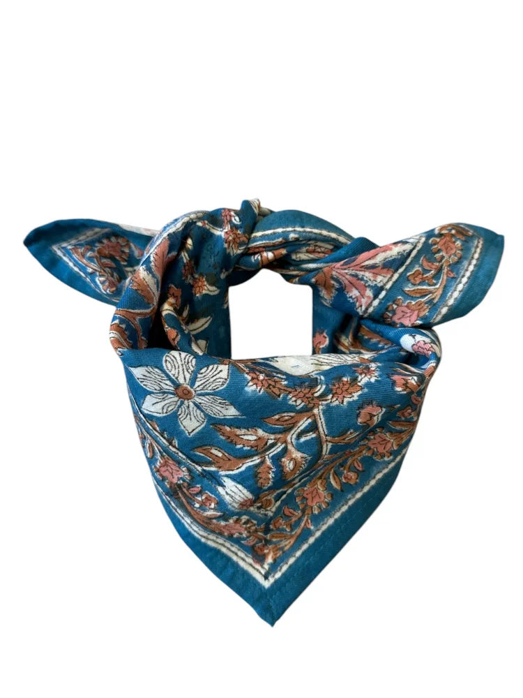 Un carré de coton comme un petit bijou textile, à nouer comme bon vous semble. Le foulard Delhi Orage de chez So Family, avec son bleu intense relevé de motifs floraux, habille les nuques curieuses et les cheveux en bataille. Glissé dans une poche, noué sur une tresse ou autour du cou, il accompagne les aventures du quotidien avec douceur et poésie.
