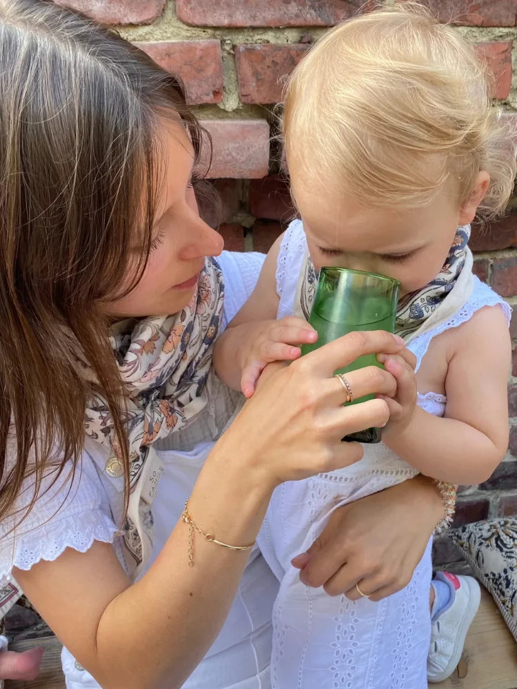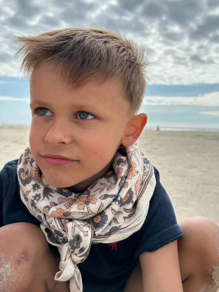 Nouez-le autour du cou ou des cheveux de votre mini bout avec des tons neutres, pour faire ressortir à merveille son bleu éclatant. De plus, il est 100% coton respirant, pensé pour la peau délicate.
