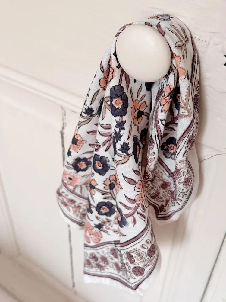 Ce foulard est 100% coton. Nous vous conseillons de le laver en machine à 30°C maximum. Ne pas mettre au sèche-linge.