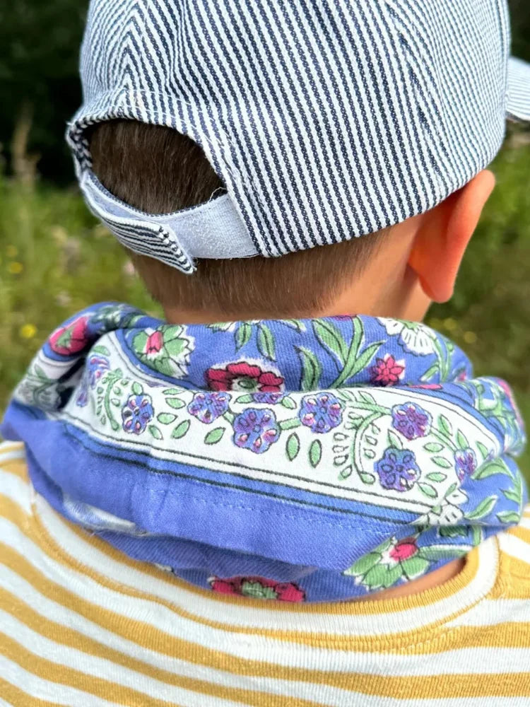 Ce foulard est 100% coton. Nous vous conseillons de le laver en machine à 30°C maximum. Ne pas mettre au sèche-linge.