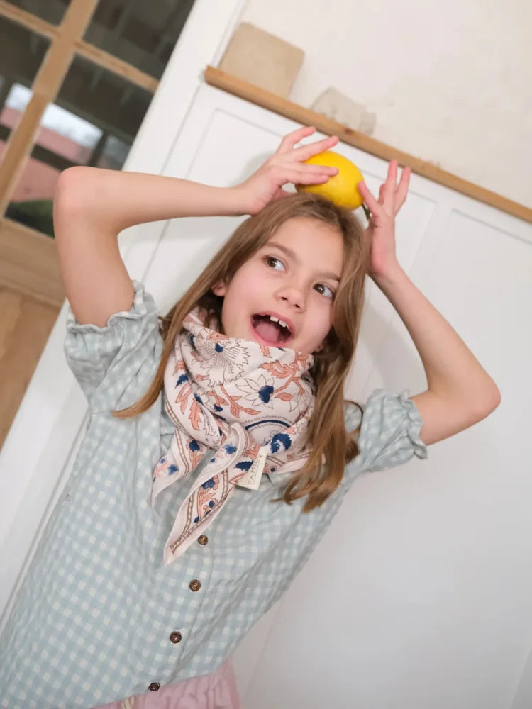 Ce foulard est 100% coton. Nous vous conseillons de le laver en machine à basse température ou à la main. Ne pas mettre au sèche-linge.