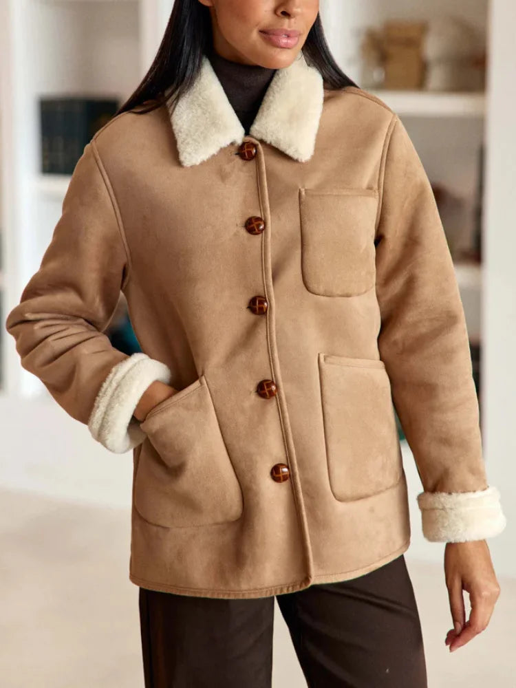 Nita de chez La Petite Étoile, c'est le manteau qui résume à lui seul tout ce qu'on aime de l'hiver : une coupe droite, des détails rétro et ce mélange irrésistible de douceur et de style. Sa matière bi-matière, mi-cuir velours, mi-effet moutonné, enveloppe sans alourdir, parfaite pour les journées fraîches où l'on veut rester chic sans grelotter.