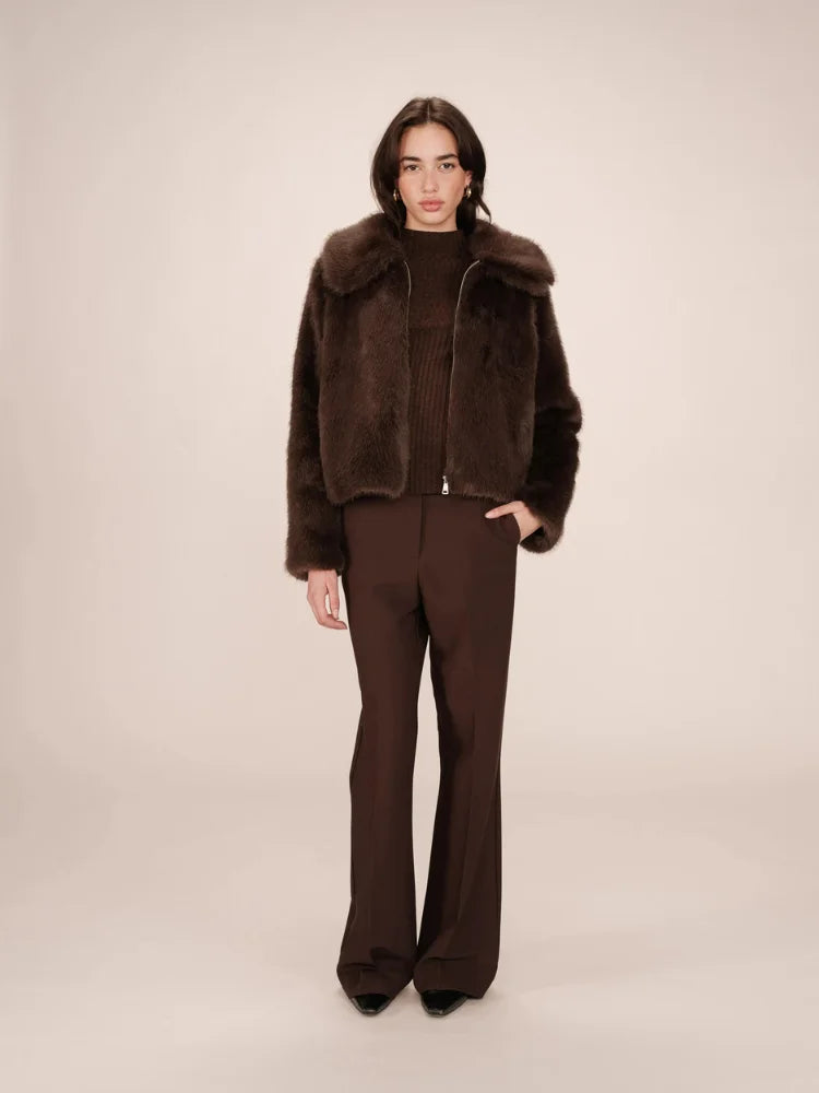 Quand les premiers froids s'installent, vous méritez un manteau qui allie douceur et style affirmé. Avec son volume court et son col à revers moelleux, le manteau Shonna de Grace & Mila enveloppe vos journées d'une touche de chaleur et de chic décontracté. On aime sa teinte chocolat intense, riche et profonde, qui se marie aussi bien à un jean brut qu'à une jupe féminine.