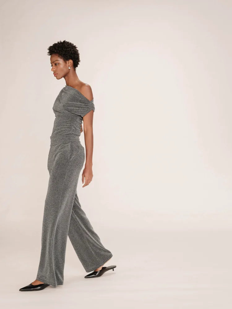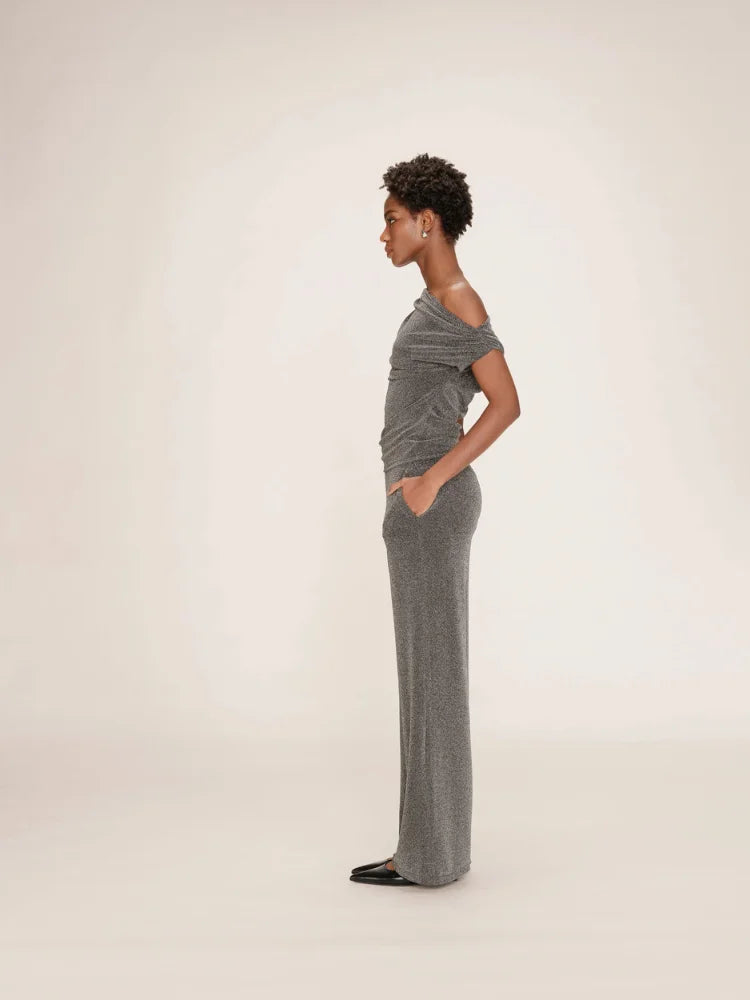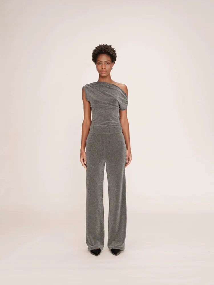 Sculptez votre silhouette avec élégance grâce au pantalon Truth. Confectionné dans une matière fluide à reflets argentés, il incarne la sophistication tendance. Sa taille haute et sa coupe droite à jambe large allongent la silhouette tout en assurant un confort optimal grâce à sa ceinture élastiquée.
