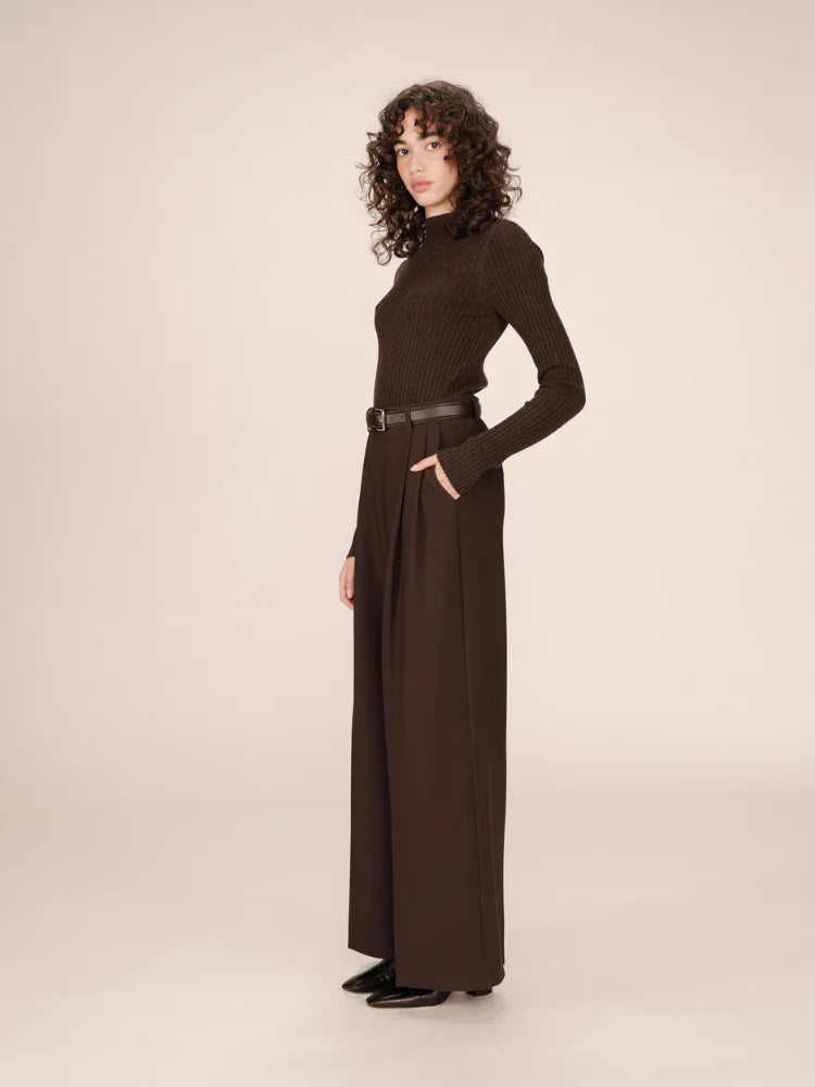 Pour l'automne-hiver 2025, on l'imagine accompagné de bottines en cuir ou d'escarpins, pour jouer entre élégance intemporelle et allure moderne. Sa teinte chocolat profonde en fait une alternative raffinée au noir, parfaite pour réchauffer vos looks tout en restant chic.