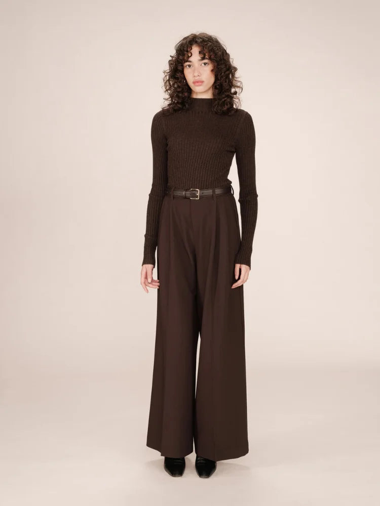 Cette saison, il revient dans deux teintes irrésistibles : chocolat, chaud et profond, et bordeaux, sophistiqué et vibrant. Deux nuances faciles à associer, qui réveillent un pull en maille ou rendent tendance une chemise blanche. On aime l'idée d'un look automne-hiver tout en contraste : un pantalon fluide, des bottines en cuir et un manteau long pour la touche chic.