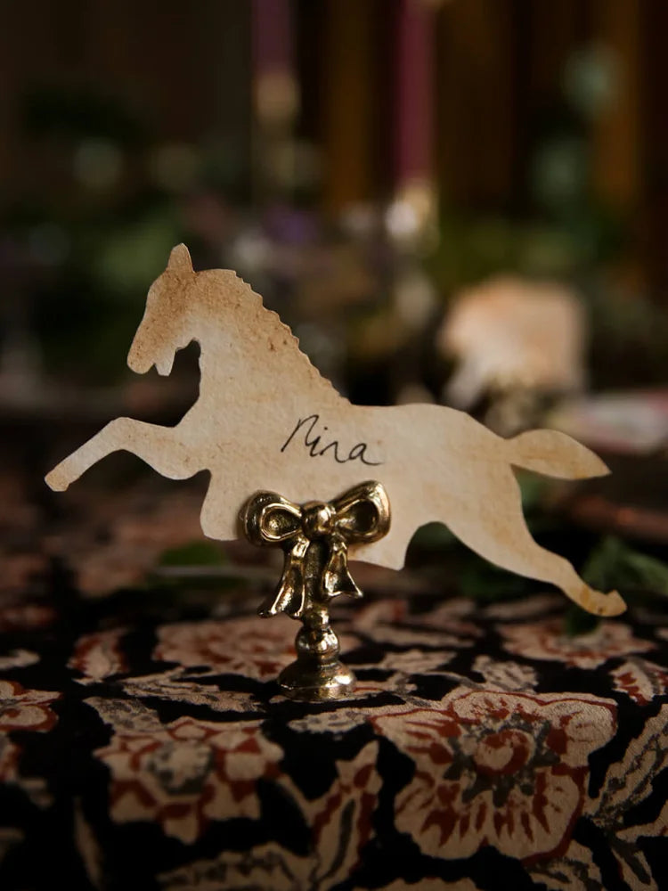 Fabriqué à la main en Inde en laiton recyclé, chaque pièce dévoile de légères irrégularités qui racontent son histoire et rendent chaque exemplaire unique. Sur une table dressée, une étagère ou un coin bureau, il accueille vos petits mots, photos ou marque-places avec une élégance discrète et pleine de caractère.
