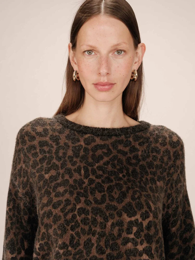 Cet automne-hiver 2025, laissez-vous séduire par le charme indomptable du pull Santigold signé Grace & Mila. Avec son motif léopard subtilement contrasté et sa coupe ample, il revisite un grand classique en lui donnant une allure contemporaine, facile à porter au quotidien. Doux au toucher et visuellement affirmé, il incarne l'équilibre parfait entre confort et audace.