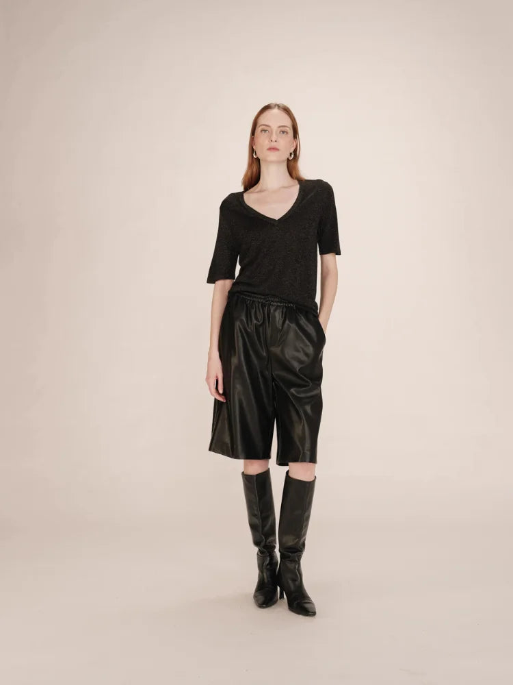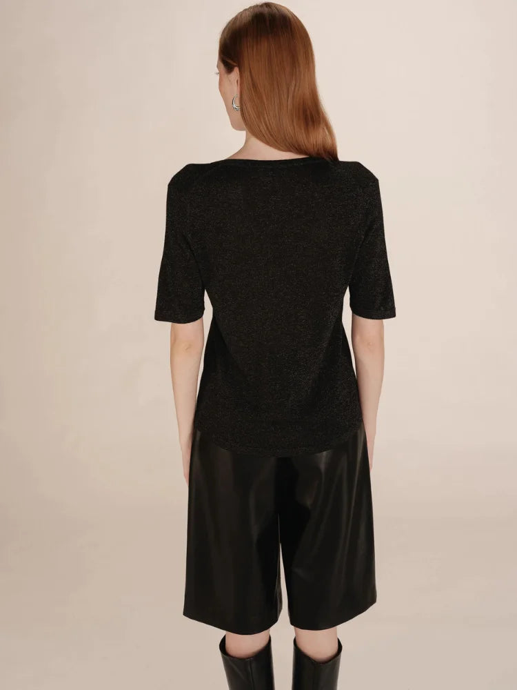 Taylor, c'est le t-shirt Grace & Mila chic qu'on enfile les jours où l'on veut briller sans trop en faire. Sa maille douce au fil légèrement métallisé accroche la lumière avec subtilité, tandis que son joli décolleté en V allonge la silhouette avec naturel. Sa coupe droite tombe parfaitement, et ses manches courtes lui donnent ce petit air décontracté qu'on aime tant.