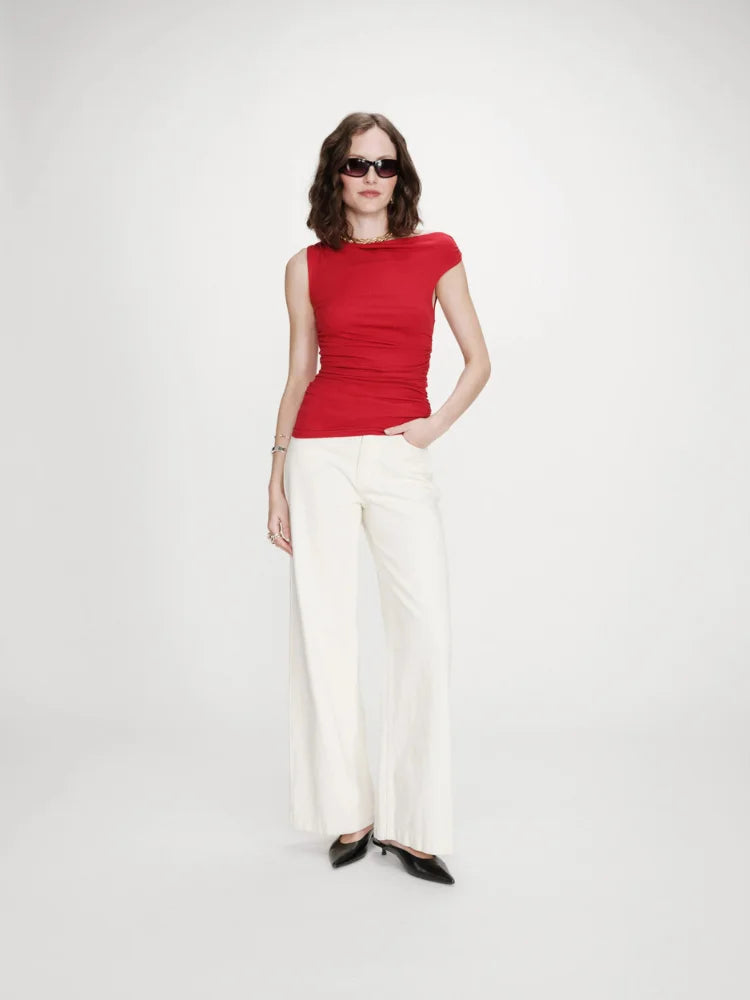 À porter avec un pantalon clair pour un contraste chic ou un jean brut pour une allure plus urbaine. Le top Vodia fait le lien entre modernité et féminité assumée.