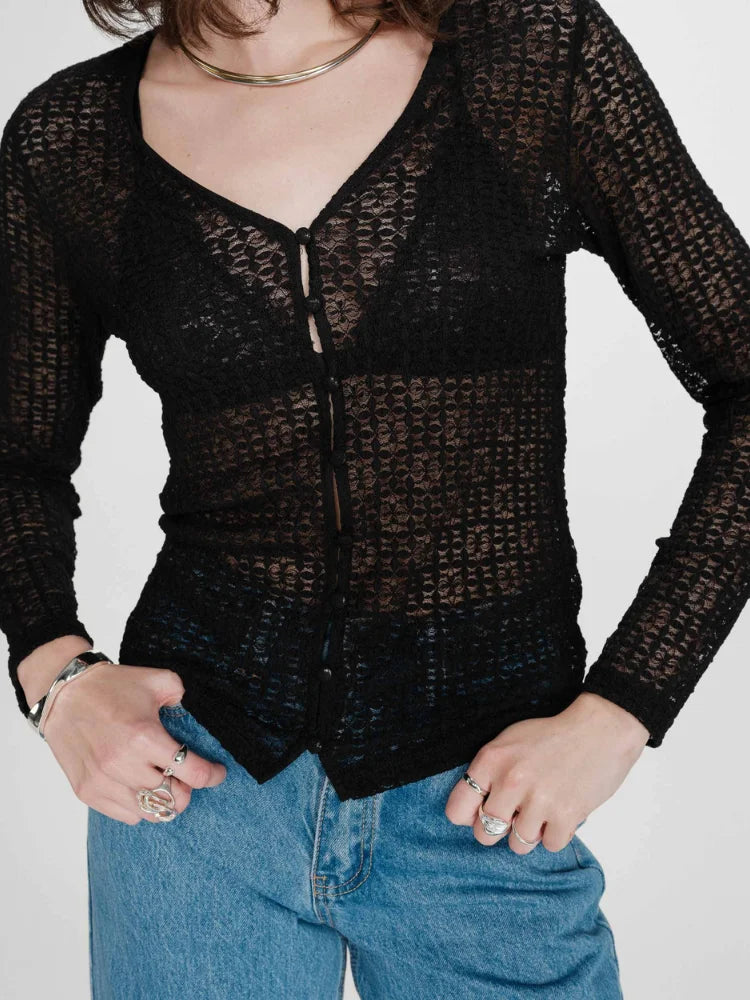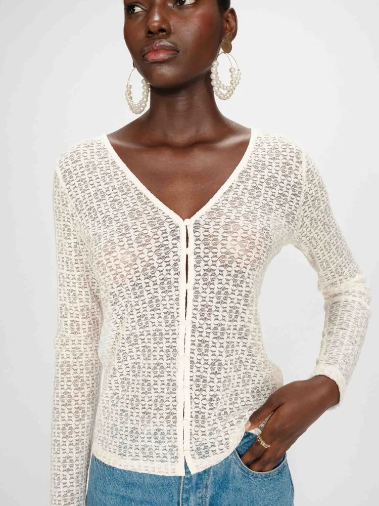Sa coupe ajustée épouse la silhouette avec justesse, tandis que la dentelle stretch dévoile juste ce qu'il faut. Boutonné sur le devant, il se porte fermé pour une allure chic. En écru ou en noir, Venezia traverse les saisons avec une élégance évidente.