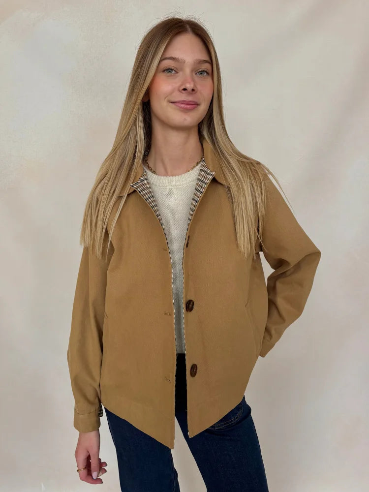 Il y a des vestes qui racontent déjà une histoire avant même qu'on les enfile. Yzea est de celles-là. Avec sa teinte beige chaleureuse, douce comme une page de carnet patinée par le temps, elle s'impose comme la complice idéale des matins d'automne et des soirées encore fraîches.