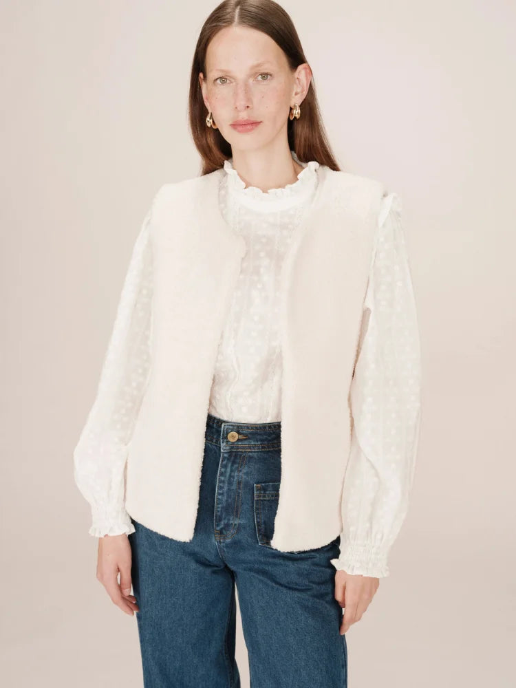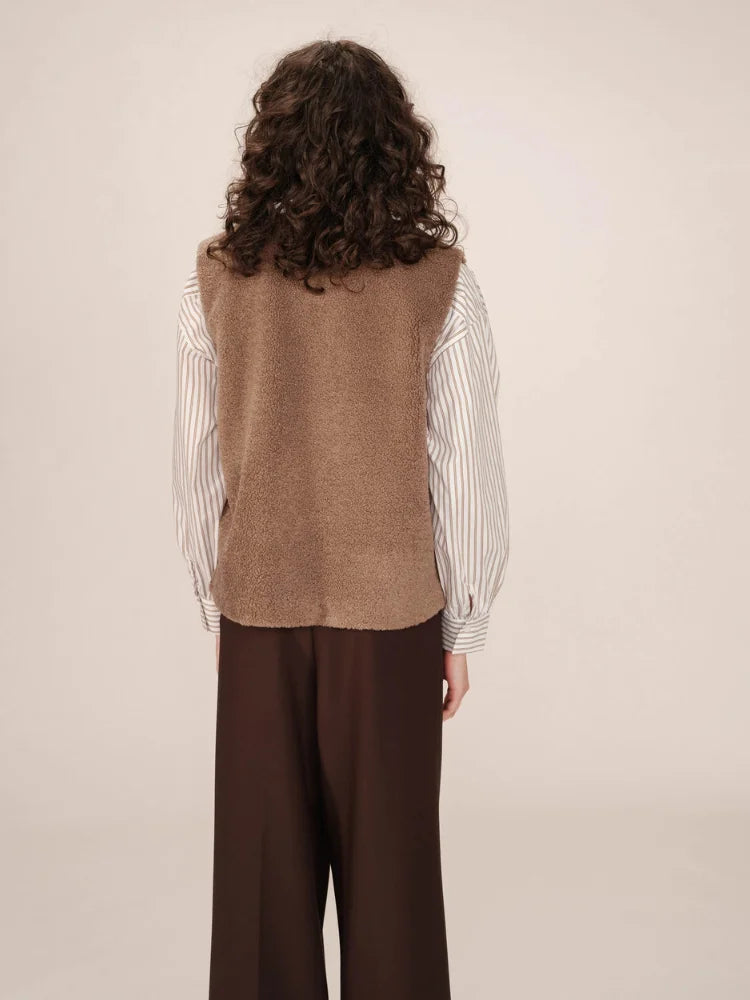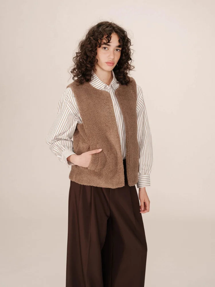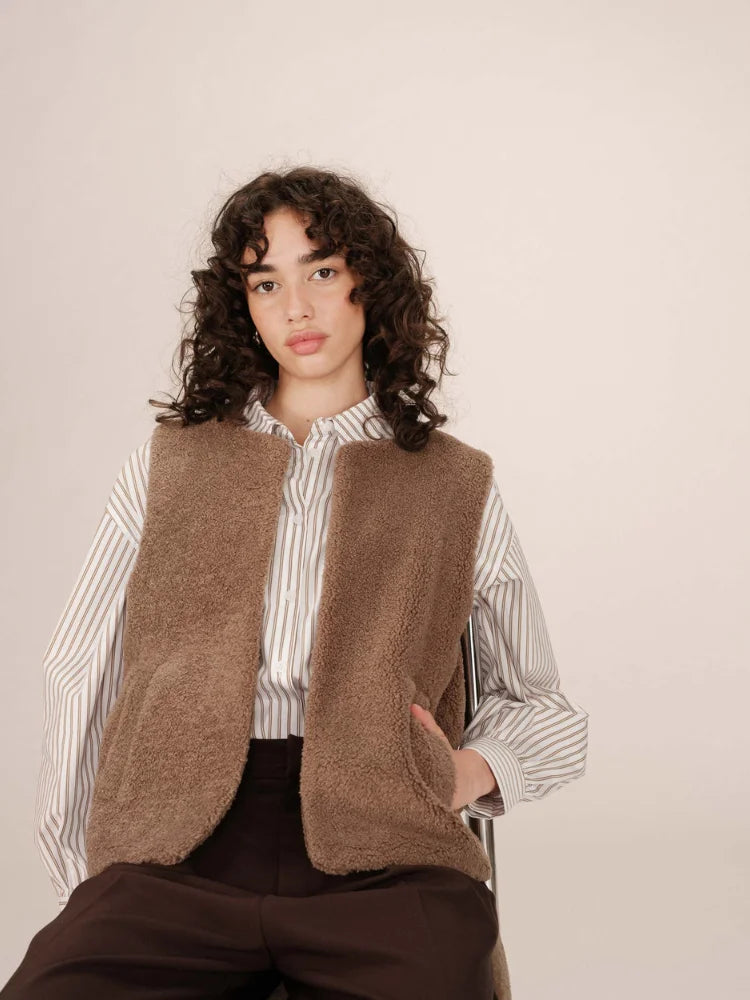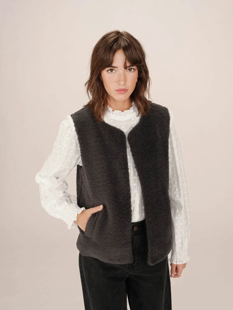 Avec Sinatra, tout est une question de confort chic. Cette veste sans manches signée Grace & Mila se glisse facilement sur une chemise fluide ou un pull fin pour réchauffer vos tenues de saison. Sa coupe droite et son encolure ronde lui donnent un style épuré, tandis que sa matière douce façon "doudou" séduit par son allure cocooning.