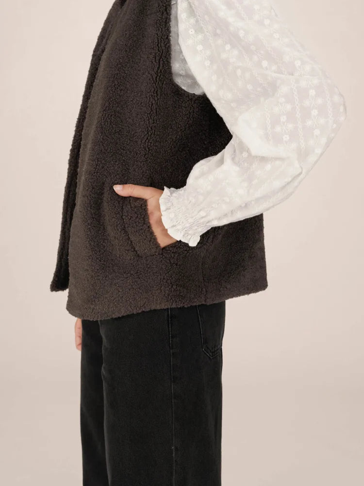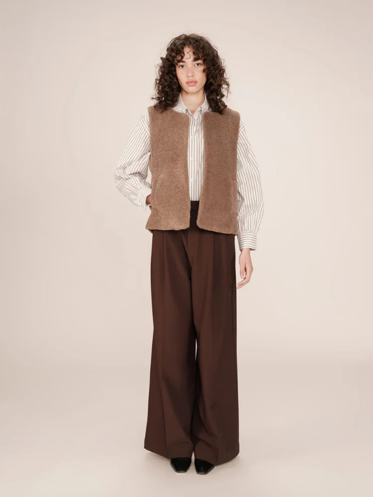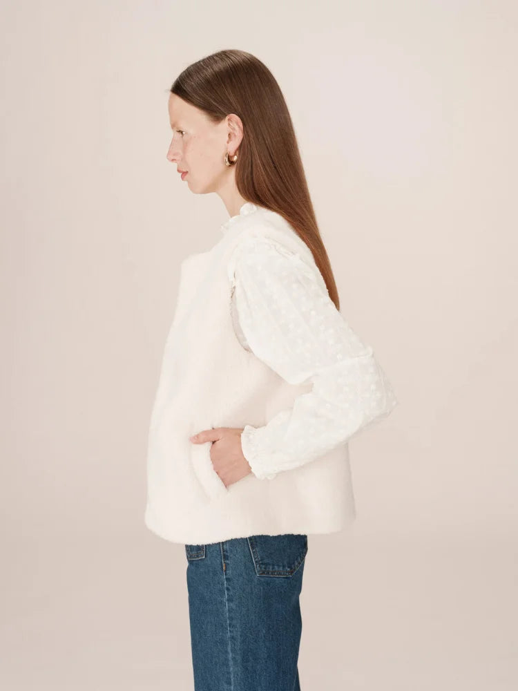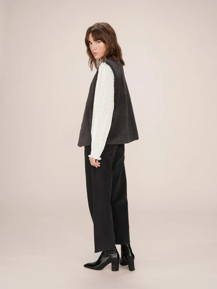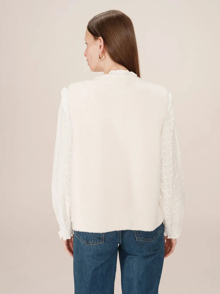 Avec Sinatra, tout est une question de confort chic. Cette veste sans manches signée Grace & Mila se glisse facilement sur une chemise fluide ou un pull fin pour réchauffer vos tenues de saison. Sa coupe droite et son encolure ronde lui donnent un style épuré, tandis que sa matière douce façon "doudou" séduit par son allure cocooning.